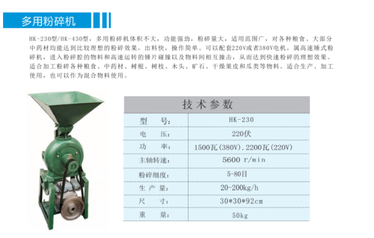 HK-230多用粉碎机体积不大,功能强劲,粉碎量大,适用范围光