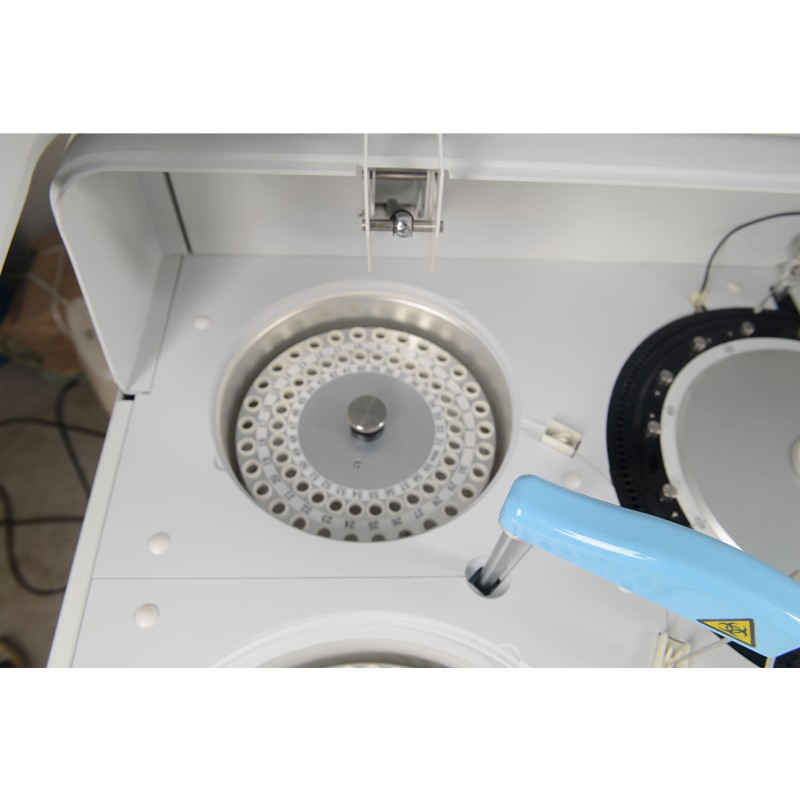 样本盘:150个样本位,双圆盘设计,其中60个冷藏样本位,样品、校准、质控可以任意编辑放置;