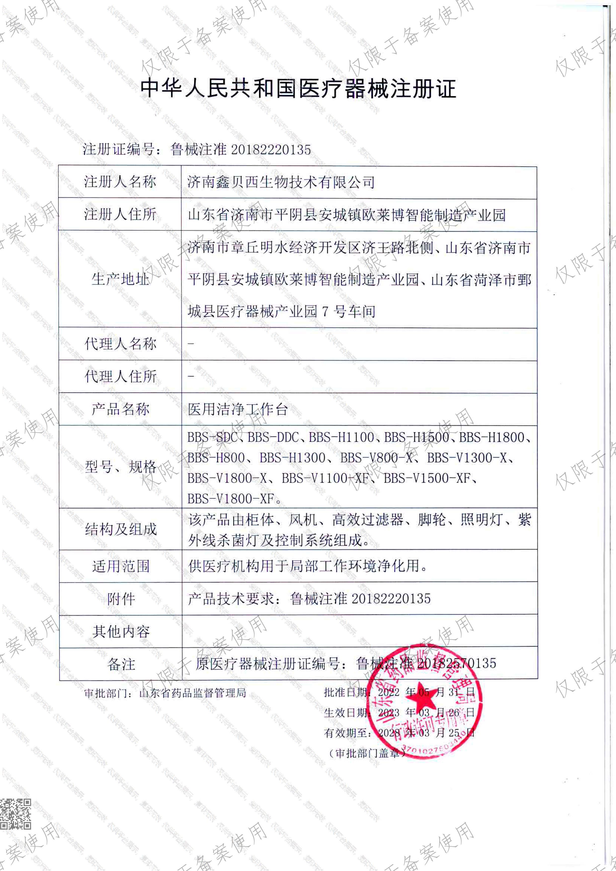 批准文号:鲁械注准20182570135